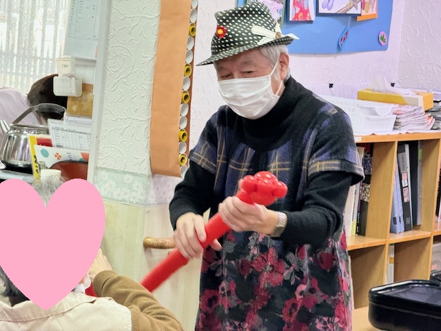 デイサービス帝塚山にて、「マジックショー」と「バルーンアート」を実施しました。 どんどんお金が出てくるマジックで皆様驚き「一万円出して~」と盛り上がりました。 後半はバルーンアートにてライオンを作りました。 皆様大変喜ばれておられました。