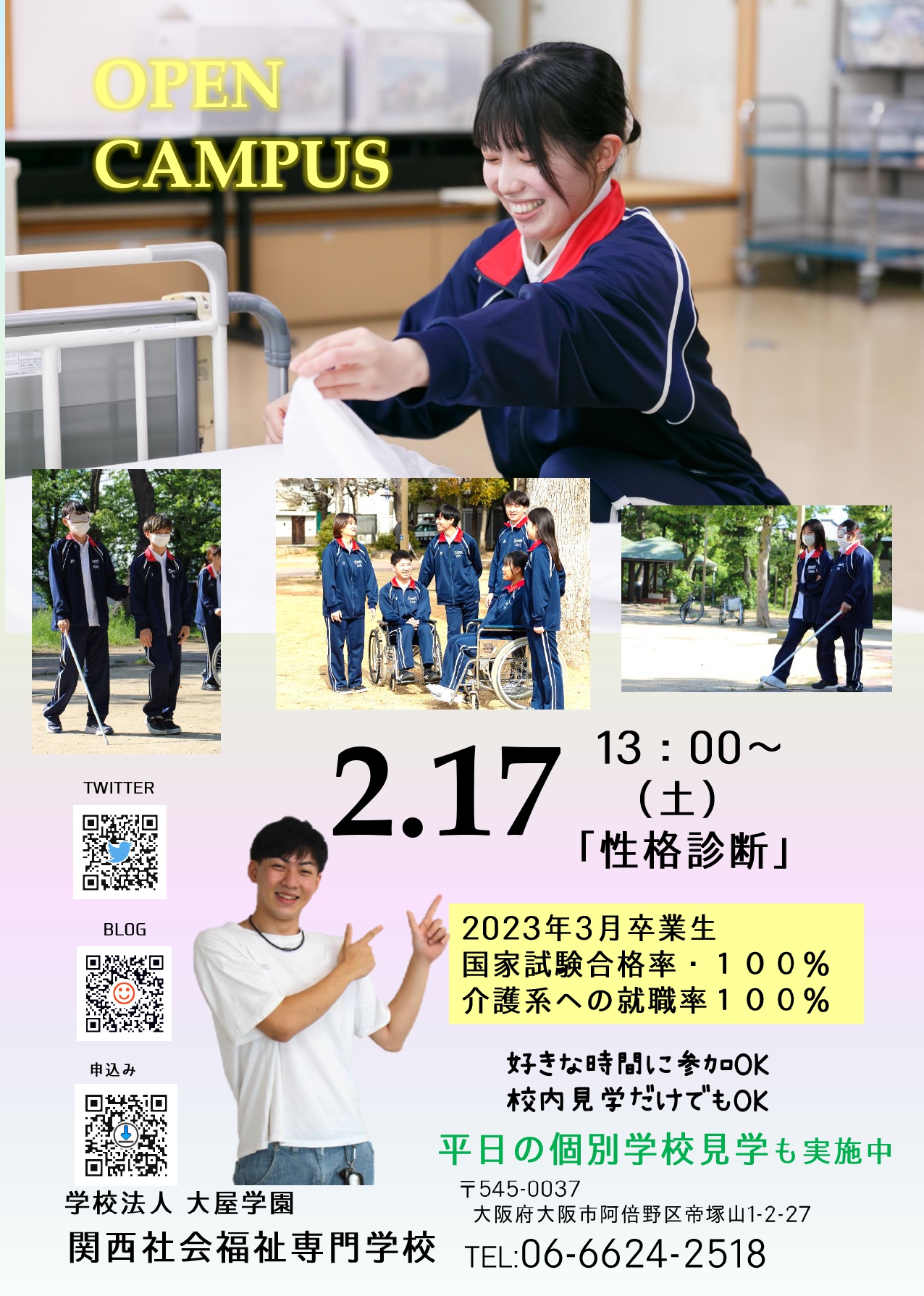 関西社会福祉専門学校の2月のオープンキャンパスのご紹介です。