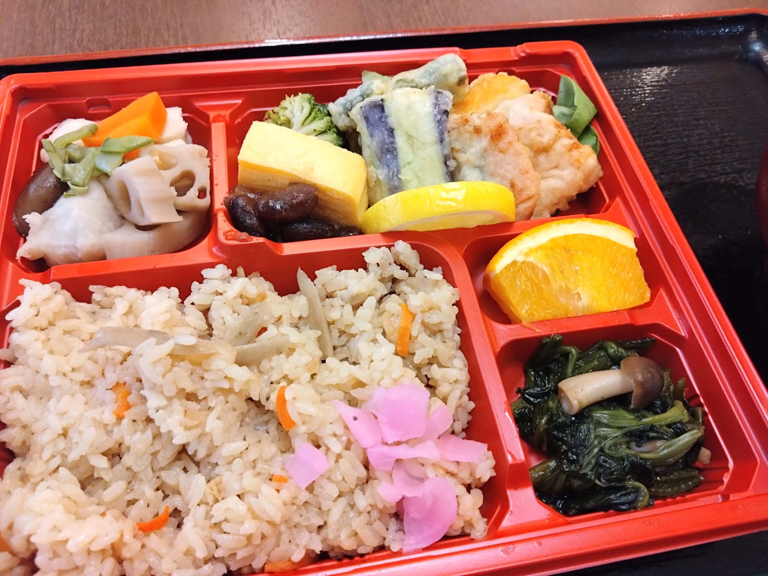 グレースマサコーヌ阪南町のご当地弁当のご紹介です。 今回は、広島県・広島駅「幕の内弁当」です。 炊き込みご飯は皆様からも人気が高く、いつも「おかわり欲しい」とか「たくさん食べれる」といったお声を頂戴します。 今回も、天ぷらや厚焼き玉子などたくさんのおかずに目移りしながら、同様のお声を頂戴致しました。